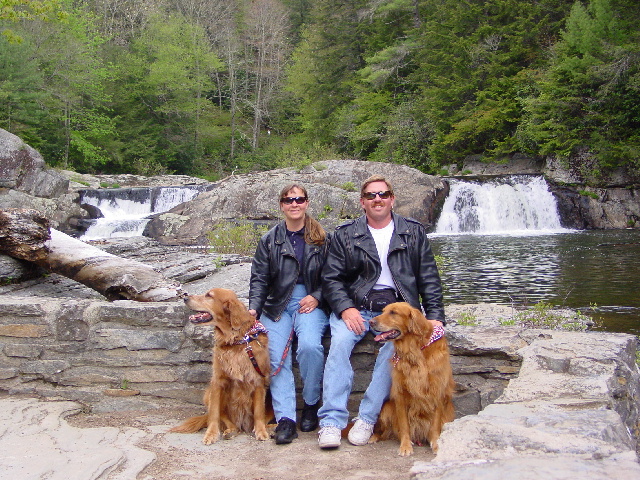 From Wilkesboro, we made our way towards Boone, North Carolina. Following more beautiful roads with too many twists and turns, we eventually arrived at the Mast General Store (circa 1883) in Valle Crucis (picture 16), adjacent to Boone. This was a waypoint that Janet had planned based on the comments of Charles Kuralt, who said that this store embodied the soul of the south and where one could find absolutely everything one might need in an unhurried, somewhat cluttered and eclectic general store. He was right. I found an ice-cream sandwich and an ice-cold root beer in a glass bottle. Janet found a diet Dr. Pepper, also in a glass bottle. Max & Bailey found some new friends in the store's employees who gave them free treats and some snazzy bandanas. And Marie Freeman, a reporter from the Watauga Democrat newspaper, found us. Actually, she had chased us all the way through Boone, but we didn't know she was following us, so we never stopped.