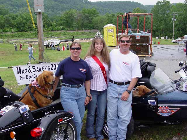 Laugh if you will about the size of the parade, but the size of this little town's heart is no laughing matter. Our fundraising event in Little Rock - a city of nearly 200,000 - was beaten by the efforts of a town with a population equaling only 1% of the big city. The Mayor, members of the Town Council and representatives from many of the businesses stopped by the Hogs For Dogs booth to buy shirts and express their support for Max & Bailey's ride. We even had our picture taken with the 2004 Pioneer Days Parade Queen, Amanda Whitehead. Max and Bailey were true celebrities and treated extremely well.