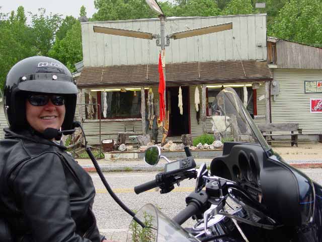 They say (who are 'they' anyway?) that the roads we traveled between Little Rock and the Norfork area are very scenic. We'll never know. It rained so hard that day that we were often challenged with simply keeping the bikes on the narrow, twisting roads. Why didn't you pull over and wait for it to pass, you ask? We would have loved that opportunity, but there were really no shoulders, overpasses or towns to stop in during the heaviest of rains. We finally pulled into a Sonic fast-food restaurant to take refuge under their canopy and enjoy a hot meal in Mountain View - about 30 minutes from our final destination.