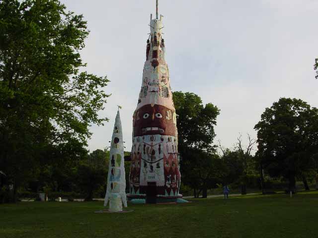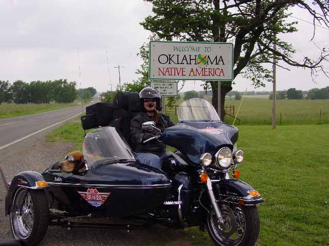 After a stop to honor the Americans lost at the Oklahoma City Federal building on Friday, May 21st we turned our bikes north on Route 66 and headed towards Kansas. We stopped at some more interesting places, like the site of the world's largest totem poles in Foyil, Oklahoma, along the way. And around noon that day, we said good-bye to Oklahoma and hello to Kansas. Max and Bailey were now in the Land of Oz, which is where our next journal will pick up.