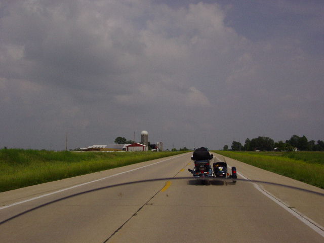 The constant cry of those sirens lasted most of the night, matching the change from clear skies to ominous clouds and strong winds as the storms rolled in and out. We watched from inside our hotel room as the bike covers shook violently with each new gust of wind. And when darkness came, the sirens sounded louder and seemed even more urgent in their warning. By morning, I wasn't much of a believer in that bright, friendly 'Welcome To Kansas' sign anymore.