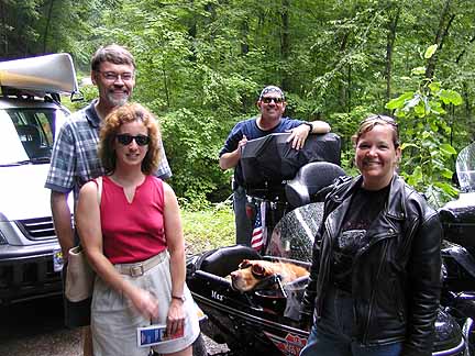 Blaine and Janet loaded up the dogs and we went for a little day ride to the New River Gorge Visitor center (where they sold a few T-Shirts and gathered some donations from a crowd of people surrounding their bikes).
