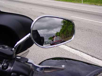 Off I went, merging with Interstate traffic west on I-40 heading for Hwy 52 in Winston-Salem, North Carolina. I had planned a nice back-roads ride... but in the rain - as heavy as it was - I figured Interstate travel is safer and I wasn't gonna see much scenery anyway. The fog was thick and the clear faceshield had no wipers, so I just hunkered down and trudged through it.