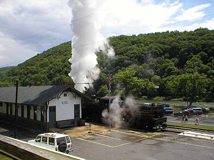 These pics (#37-41) were taken the next morning while everyone was packing to head on out. It was only a few short miles to Cass, WV where we stop at the Cass Scenic Railroad for lunch (yeah, lunch - we got a pretty late start after last night!) While inside, it poured rain before we knew it was happening - poor Brad was the only one out by the bikes who saw it coming and scrambled over to the sidecars to cover the dogs up...just in time. (Pic # 47 shows us trying to dry them all off.