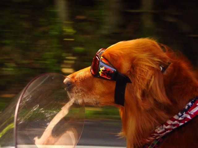 favorites: Max enjoying the ride as we speed along the nation's byways.