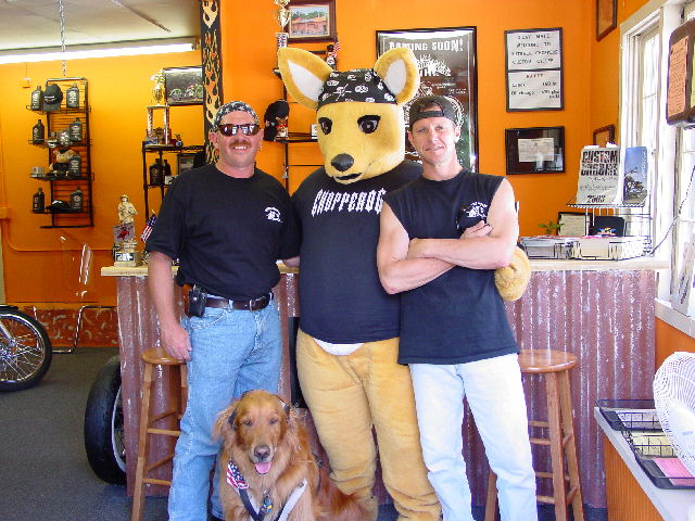 beautiful custom chopper. He was smiling, pointing and screaming as he parked his bike. "I