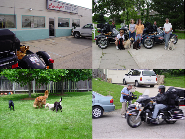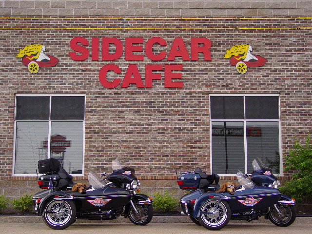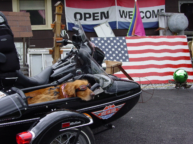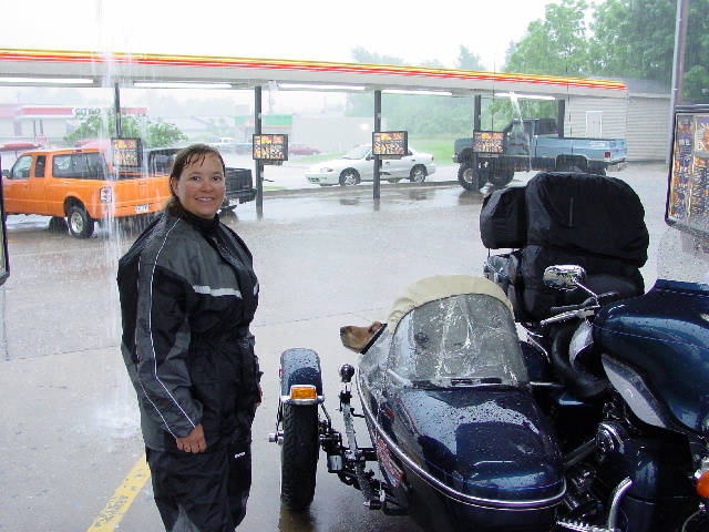 tossed Max & Bailey into the sidecars and put on their rain covers. We should have put