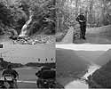 waterfall near the Kanawha Falls area, Blaine posing on the walkway at Hawks Nest,