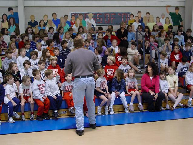 Photos-of-the-Day : (1) Third grade students visit with Max (2) Blaine takes questions from