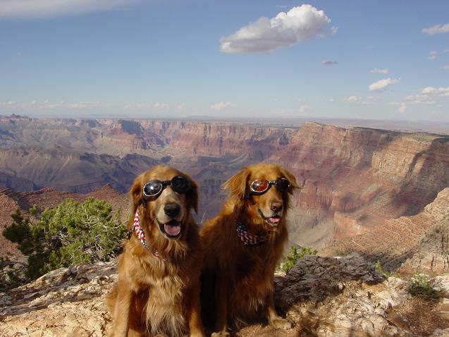 BIG DOGS DWARFED BY EVEN BIGGER CANYON - THE GRAND CANYON