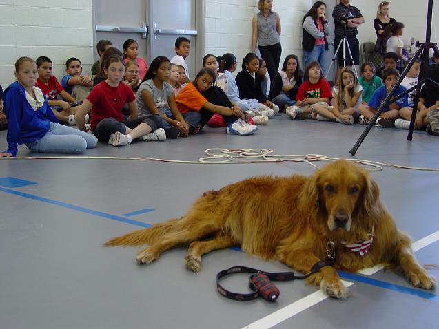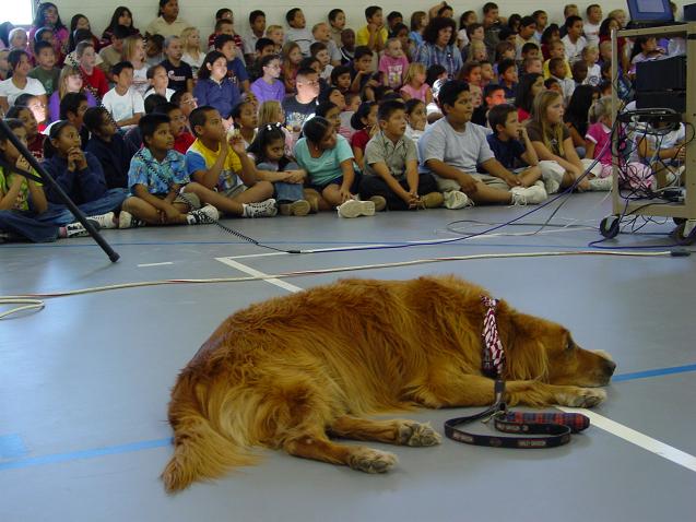 Photos-of-the-Day : (1) Bailey gets lots of love from Cut Off Elementary students (2) Janet