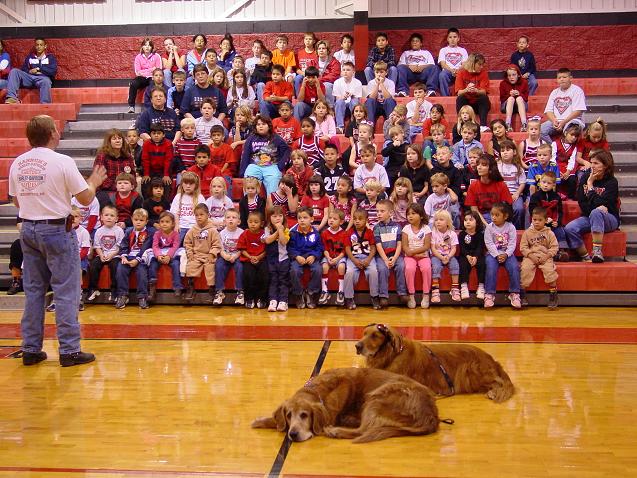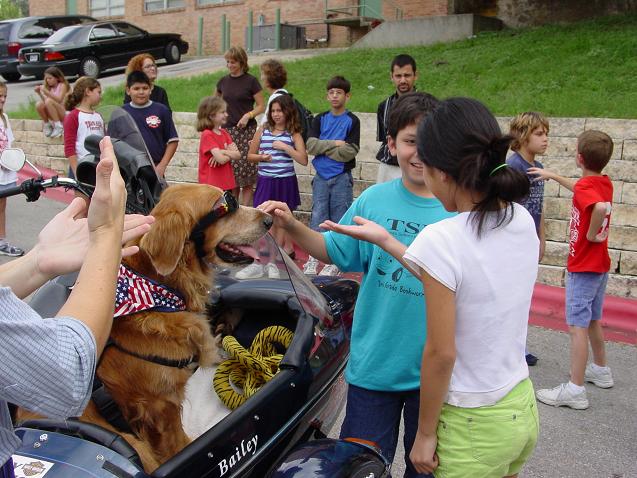 we had. Hundreds of students came out with the teacher and staff to greet Max & Bailey as we