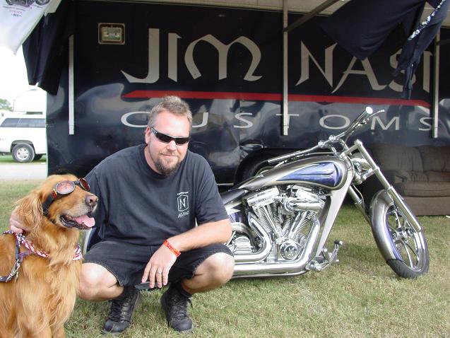 (8) Custom bike builder Jim Nasi poses with Max (9) Bailey wins photo-of-the-day with his new